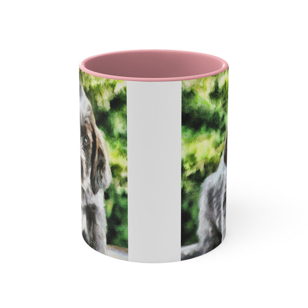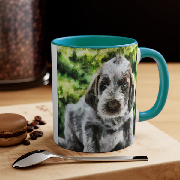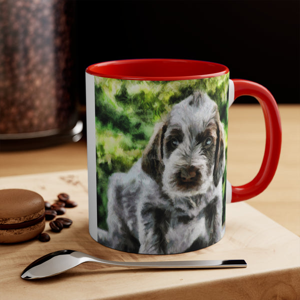 Meet the Spinone Italiano Accent Coffee Mug, 11oz, where charm meets functionality! This delightful mug boasts a colorful C-handle and interior, perfect for those who adore the shaggy-bearded Spinone Italiano. Made from sturdy white ceramic, it is designed for easy sipping while you relish the warmth and personality it adds to each delightful cup.