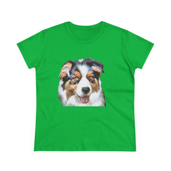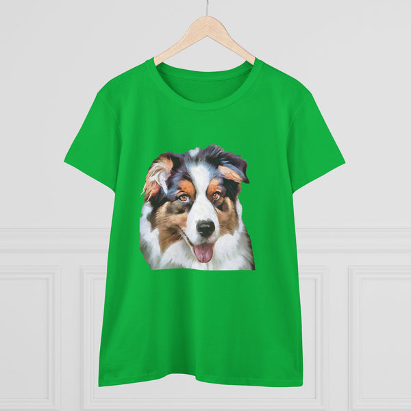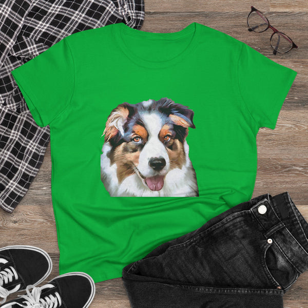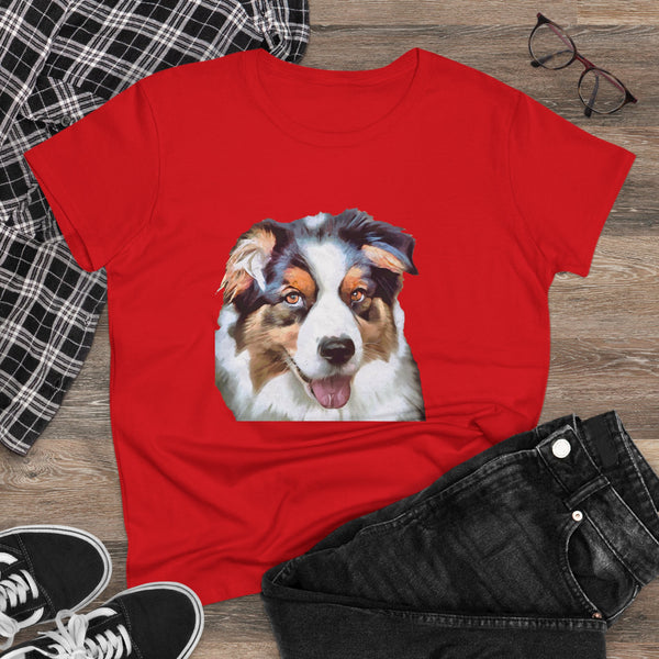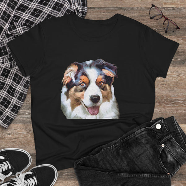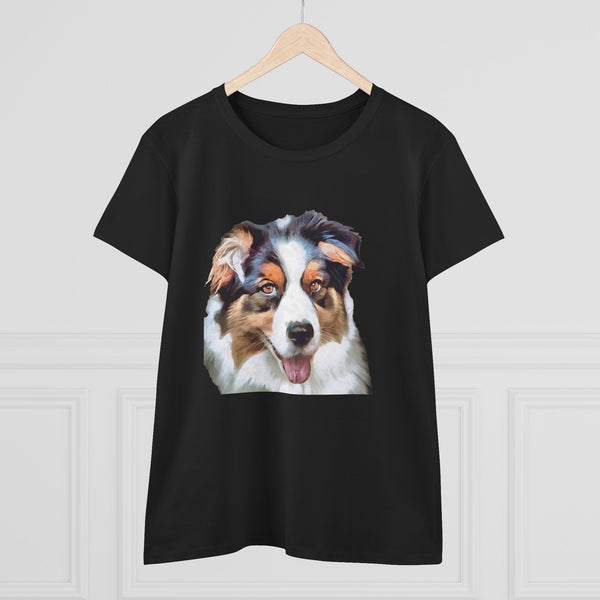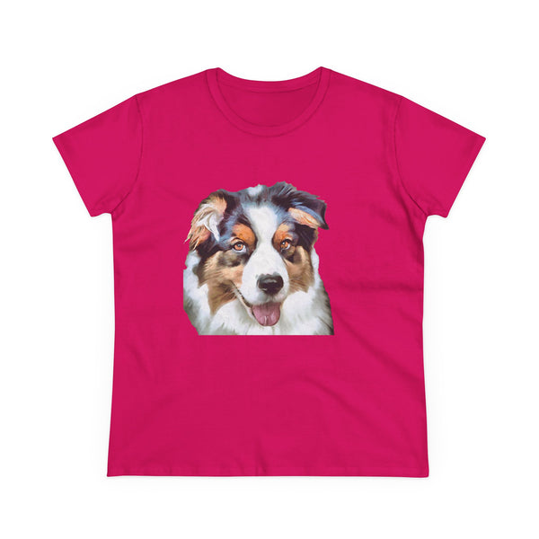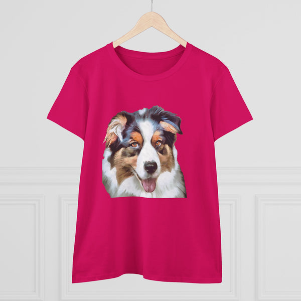 Introducing the Australian Shepherd - Blue Merle Women's Midweight Cotton Tee, a perfect blend of comfort and style that celebrates your love for these enchanting dogs. Crafted from 100% soft, light cotton, this tee caresses your skin, offering an elegant fit for both casual lounging and romantic outings. The semi-fitted silhouette and cap sleeves gently embrace your natural shape, while the tapered neck adds a touch of sophistication. Adorned with a captivating design inspired by an original painting, this tee serves as a tribute to the magical spirit of the Aussie. Make this delightful piece a staple in your wardrobe, showcasing your affection for the Australian Shepherd and the artistry of everyday life.
