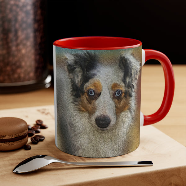Embrace your morning with the Australian Shepherd 'Zack' Accent Coffee Mug, 11oz. This charming mug captures the essence of your lovable Aussie, featuring a two-tone design that adds a touch of elegance to your daily routine. The delightful accent C-handle and vibrant interior invite you to savour each sip, turning your coffee breaks into a celebration of life. Made from pristine white ceramic, it boasts a unique colour contrast that enhances its aesthetic appeal, making even the simplest gatherings feel special. Let this mug remind you of the love and joy that your furry companion brings into your life with every use.