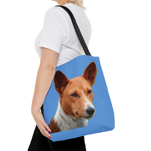 Introducing the Basenji Tote Bag, where elegance meets playful charm. This delightful accessory showcases an original painting, turning heads as you stroll along the beach or navigate city streets. Crafted from robust 100% polyester and featuring meticulous boxed corners, this tote is designed to last, bringing sophistication to your everyday outings. The comfortable black cotton handles make carrying a breeze, while the non-woven laminate interior keeps your essentials safe and sound. Step out in style, channeling the spirited essence of the Basenji, celebrated for its unique yodeling rather than barking.