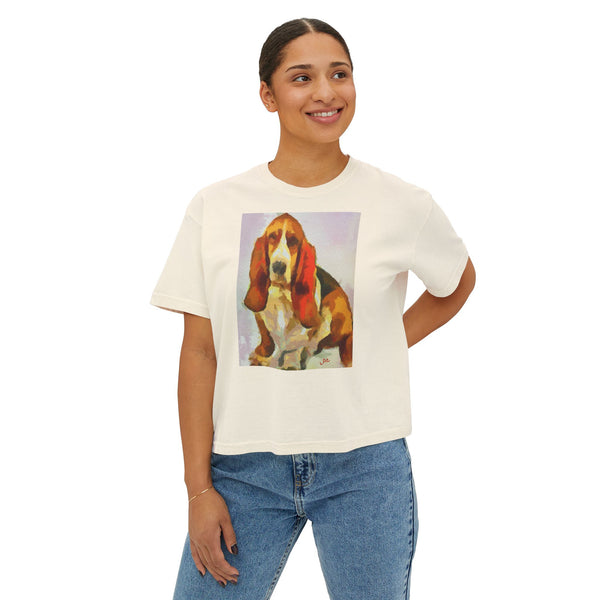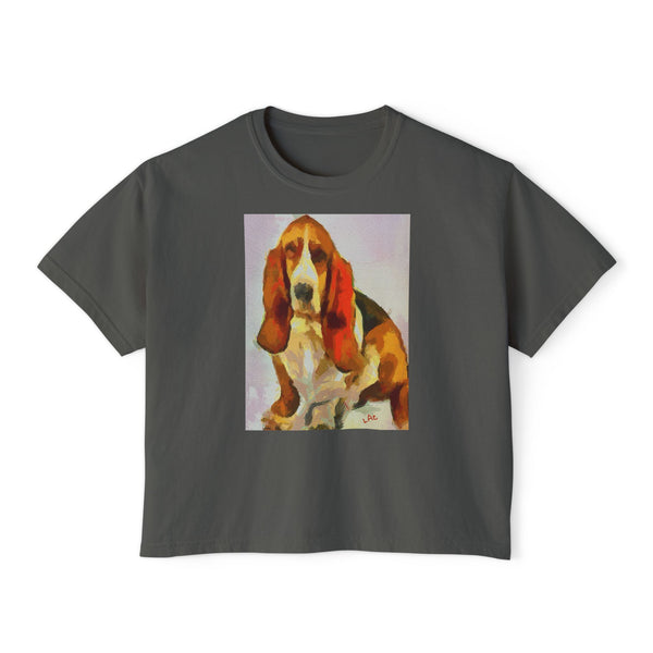 Introducing the Basset Hound Women's Oversized Boxy Tee, an enchanting blend of comfort and style. Crafted from 100% ring-spun US cotton, this tee caresses your skin with its delightful softness, making it the perfect companion for any casual outing. The timeless oversized silhouette, slightly cropped with a seamless body, offers an effortlessly chic look that celebrates your unique charm.
