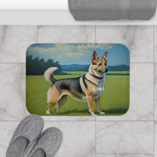 Introducing the Swedish Vallhund Bathroom Rug Mat, a delightful addition to your lavatory that celebrates your love for this charming breed. Enjoy the plush comfort of soft, durable microfiber underfoot, while the anti-slip backing keeps you secure. Its versatile size enhances any bathroom setup, imbuing your space with a playful yet sophisticated flair that every dog lover will adore.