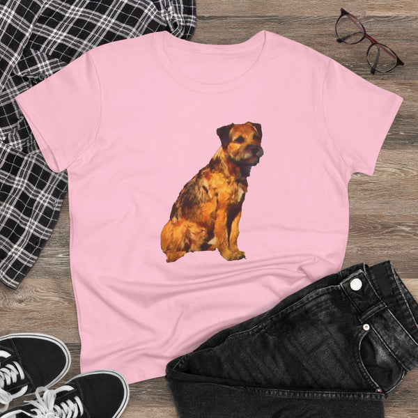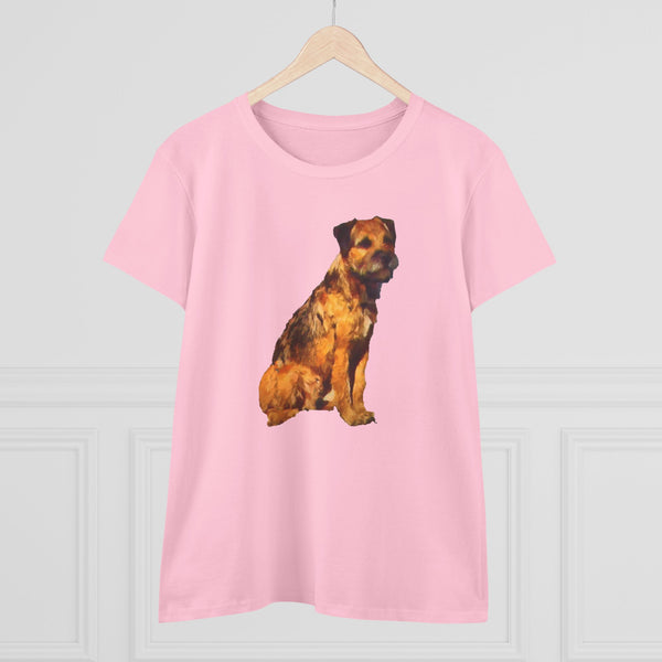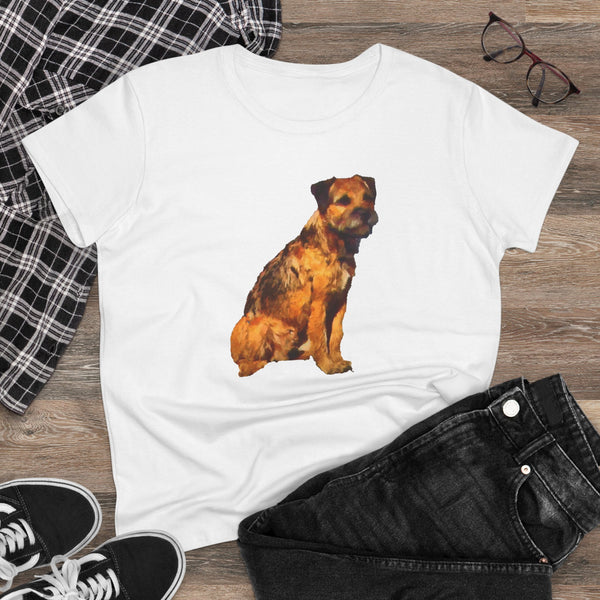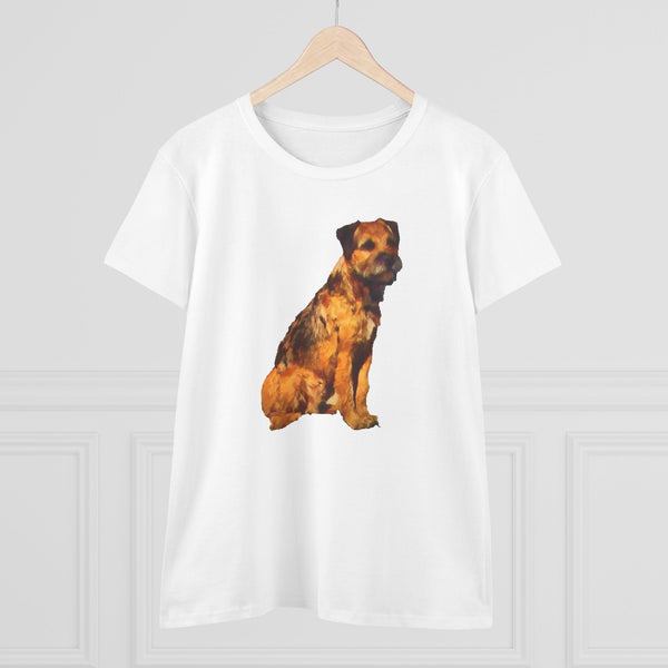 Introducing the delightful Border Terrier 'Andrew' Women's Midweight Cotton Tee, a wonderful addition to your wardrobe. Crafted from 100% quality cotton, this tee embraces the spunky and playful nature of Border Terriers. Its semi-fitted silhouette ensures a flattering shape while providing comfort in every moment.