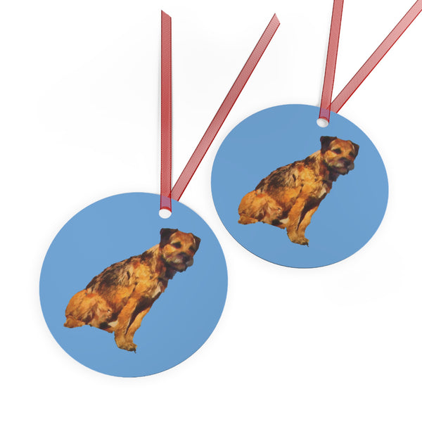 Introduce a dash of cheer to your holiday décor with our delightful Border Terrier Metal Ornaments. These festive adornments capture the spunky and playful essence of the Border Terrier, making them a perfect addition to any Christmas tree. Crafted from durable aluminum, each ornament showcases high-resolution prints on both sides, ensuring they remain vibrant and eye-catching for years to come. With a scratch and chip-resistant surface, you can safely store them in your beloved Christmas decoration box, ready to sprout joy each season. Each ornament measures 3.5 x 3.5 inches and comes complete with a ready-to-hang red ribbon.