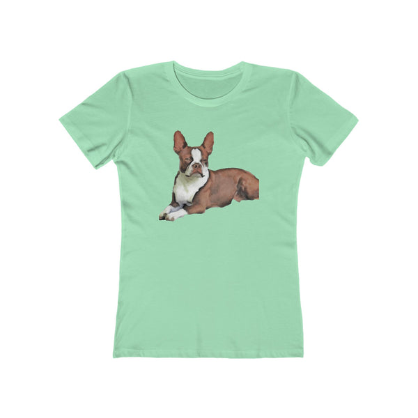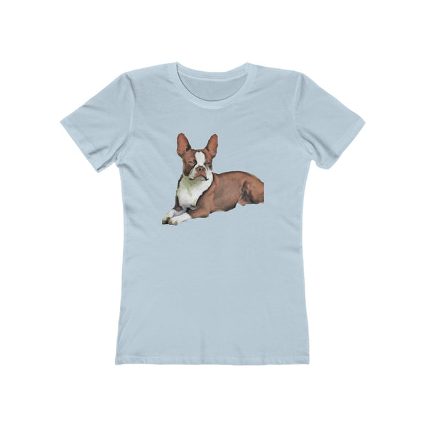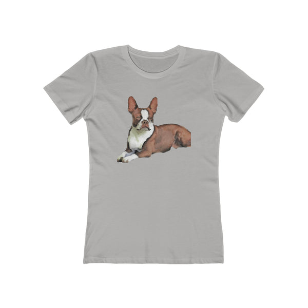 The Boston Terrier - Brown & White - Women's Slim Fit Rigspun Cotton Tee features an original painting of a comical Boston Terrier, adding playful charm to your outfit. Crafted from 100% combed, ring-spun cotton, this slim fit tee provides superior comfort with a breathable and lightweight feel, ideal for everyday wear. Its longer body length offers stylish versatility, easily pairing with your favorite jeans or skirts.