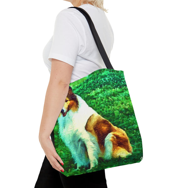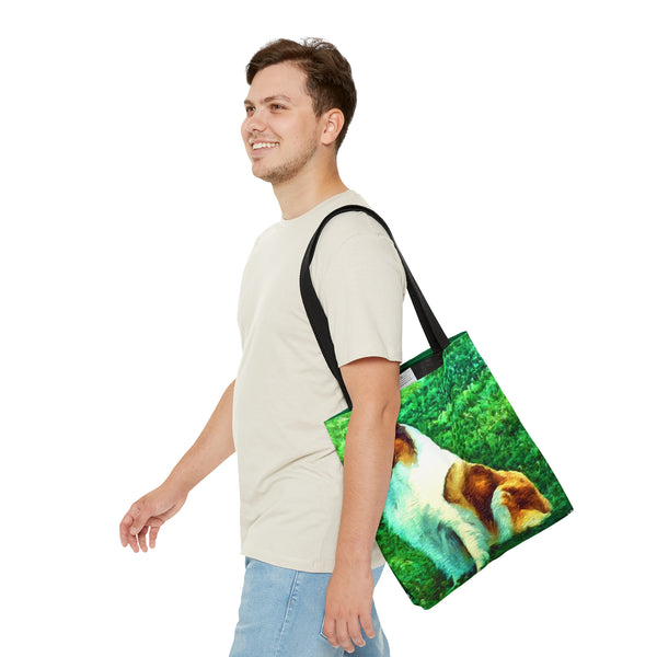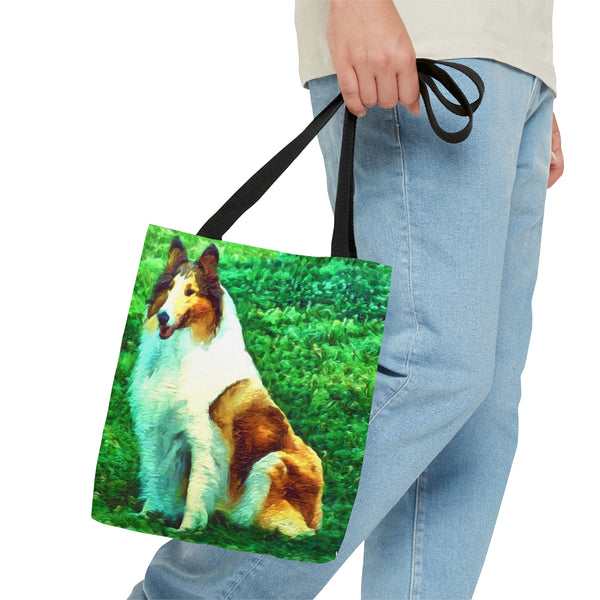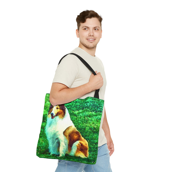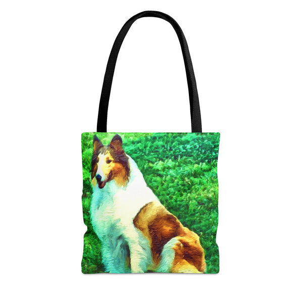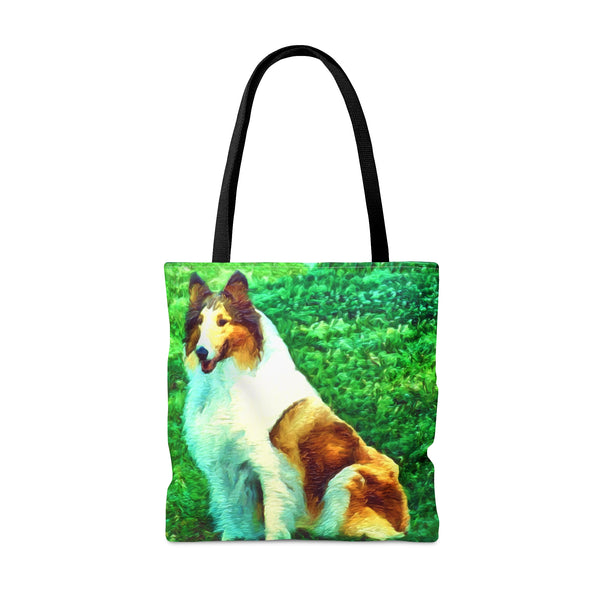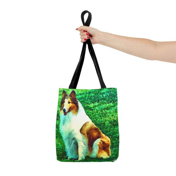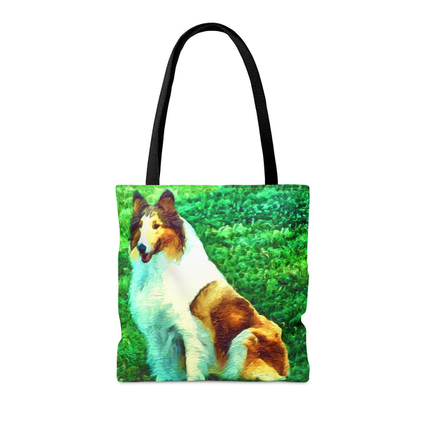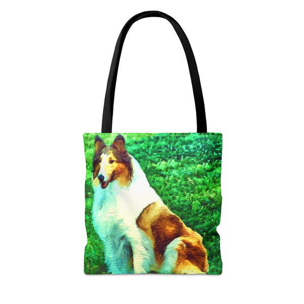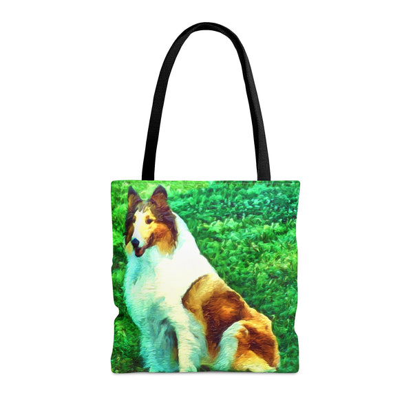 Introducing the Rough Coated Collie "Ramsey" Tote Bag—your new stylish companion that proudly displays your love for these beautiful, intelligent, and affectionate herding dogs. Whether you're heading to the beach or strolling through town, this eye-catching bag is perfect for all your adventures. Crafted from high-quality polyester, it promises durability season after season. With comfy cotton handles and a practical non-woven laminate interior, this tote seamlessly blends elegance with everyday functionality, making it an essential accessory for any dog devotee!