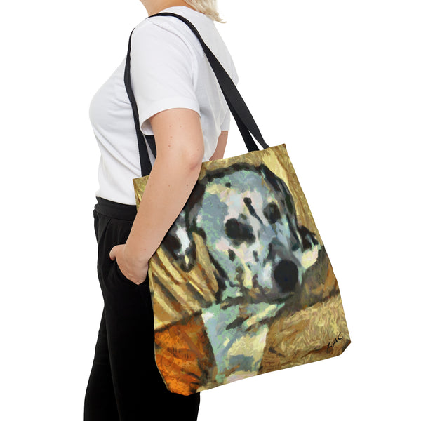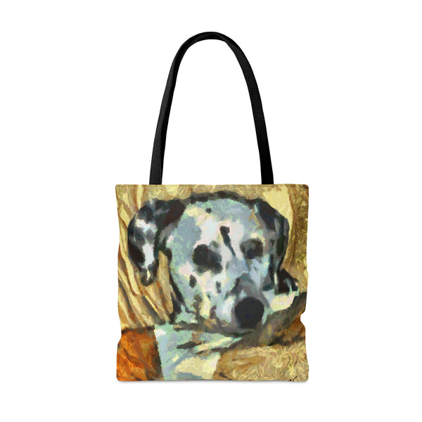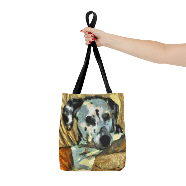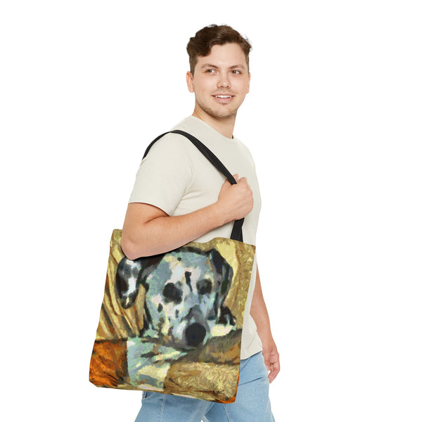 The Dalmatian 'Breakfast Time' Tote Bag is your new go-to for stylish outings and daily errands. With its eye-catching print, this tote wonderfully captures the spirit of loyal and affectionate Dalmatians, known for their firefighting heritage. Crafted from durable 100% polyester, it promises longevity through all your adventures. The black cotton handles offer comfort, while the non-woven laminate inside ensures easy maintenance.