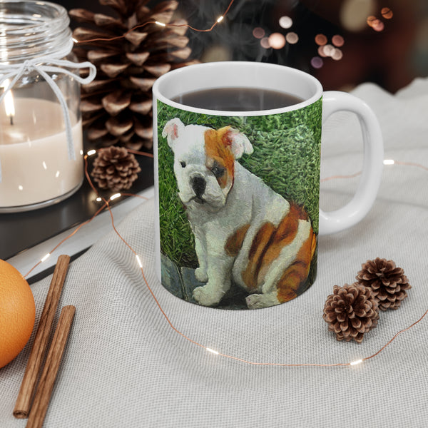 Introducing the English Bulldog 'Bugsy' Ceramic Mug 11oz, perfect for sipping your favorite brew while adding a dash of charm to your day. Crafted from sturdy white ceramic, this delightful mug features rounded corners and a convenient C-handle. It's microwave and dishwasher safe, offering functionality alongside its whimsical design. Enjoy the gentle, sweet essence of Bugsy with every sip and elevate your cozy moments.