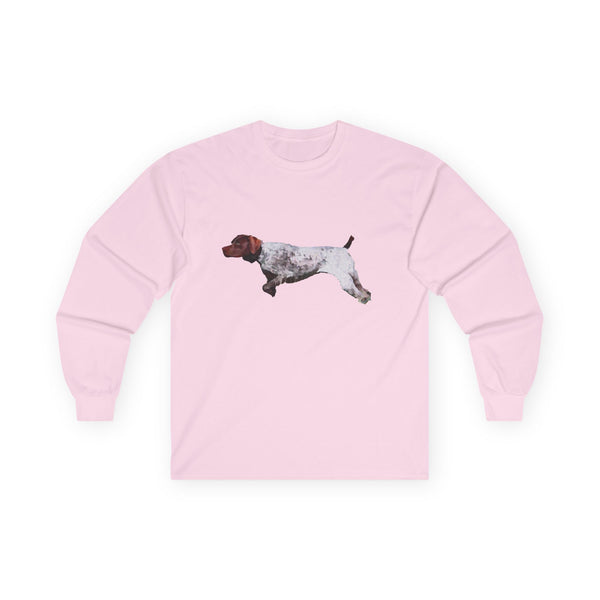 Introducing the German Shorthaired Pointer "On Point" Classic Cotton Long Sleeve Tee, where comfort meets style! Crafted from environmentally friendly cotton, this tee offers a polished look for those who appreciate quality. With taped shoulders and a seamless design, it frames your silhouette perfectly, making it not just a tee but a statement.