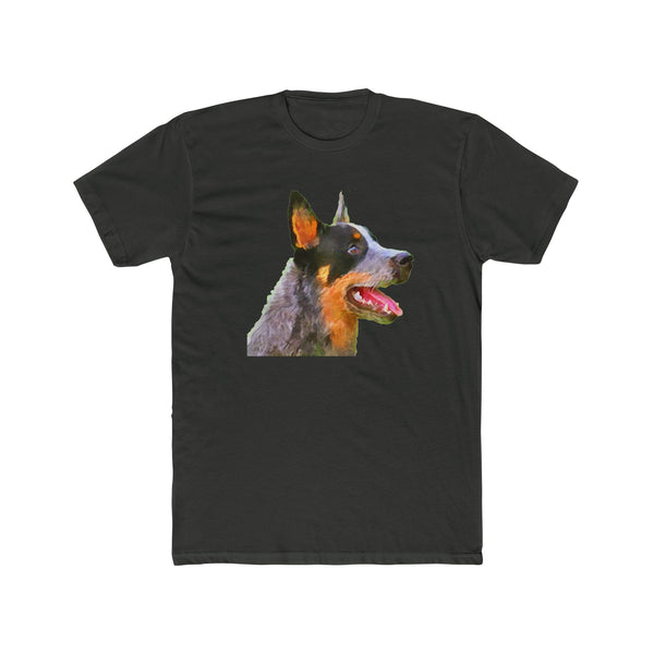 Introducing the Blue Heeler - Australian Cattle Dog 'Percy' Men's Fitted Cotton Crew Tee, a luxurious addition to your wardrobe that exudes style and comfort. Crafted from 100% combed ringspun cotton, this tee offers an exceptionally soft touch that gracefully caresses the skin, making it ideal for workouts or quiet moments with your favourite book. Its premium fit flatters a variety of body types, designed to be slightly larger for enhanced freedom of movement. With high-quality prints capturing the spirited essence of the Blue Heeler, this tee is a stunning homage to these charming companions.