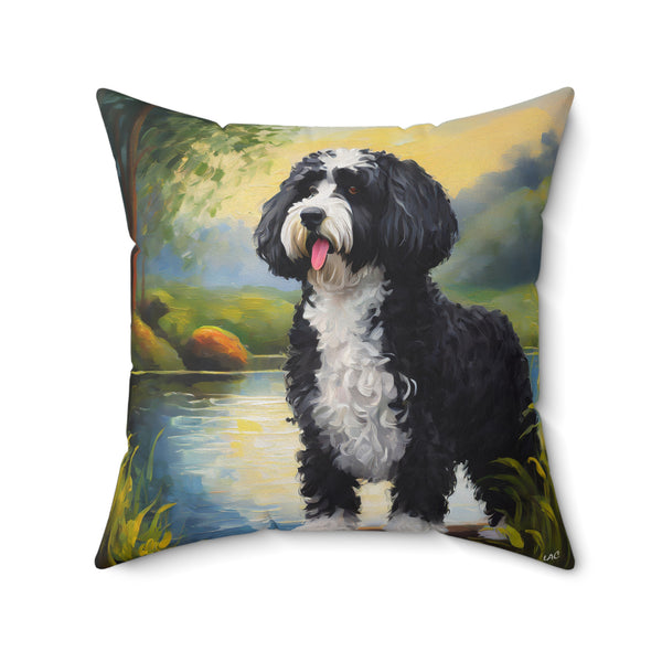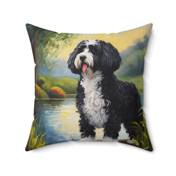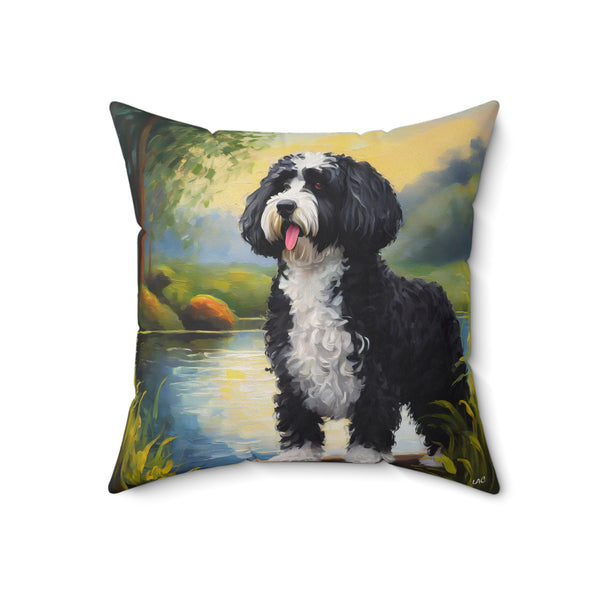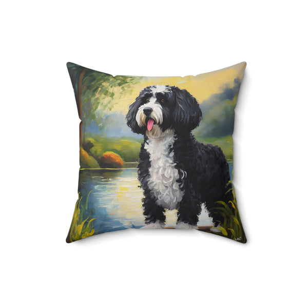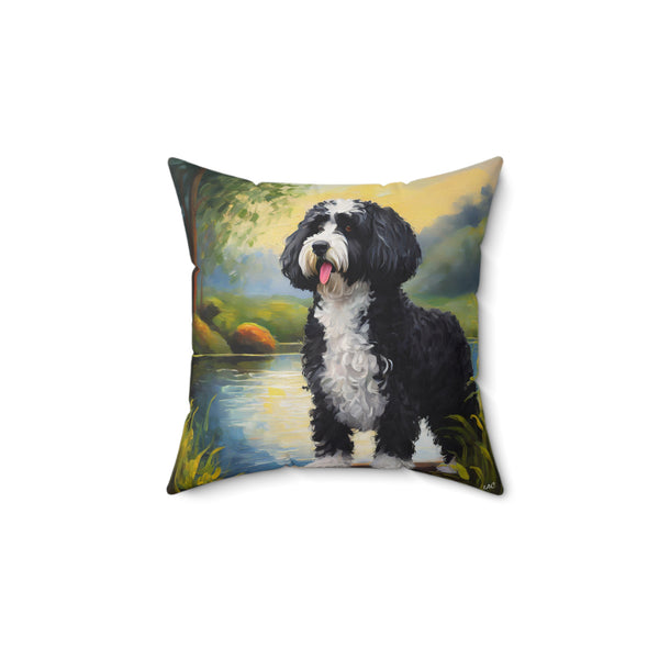 Bring home the Portuguese Water Dog Spun Polyester Square Pillow, an adorable accent that adds a dash of personality to any room! With its soft, comfy polyester cover, this pillow is perfect for lounging and snuggling. It showcases a delightful double-sided print and features a sleek concealed zipper for practicality.