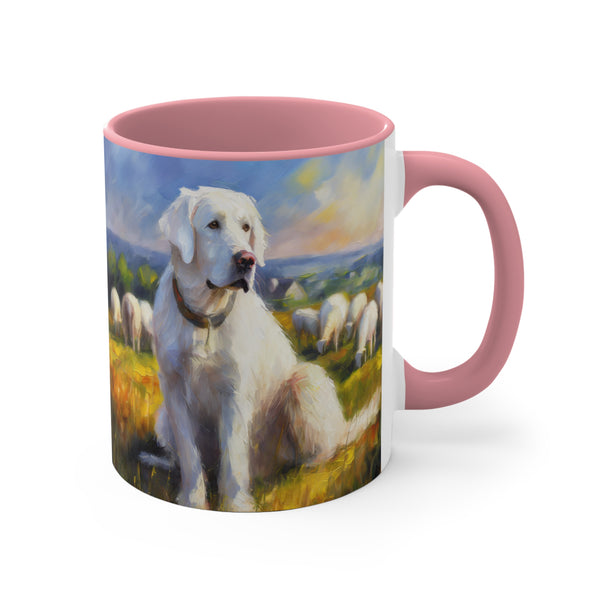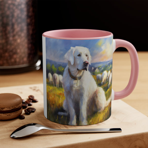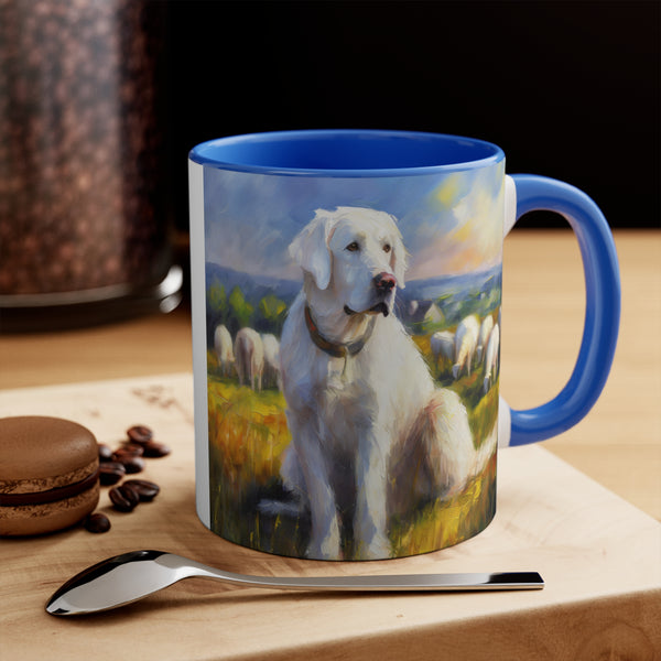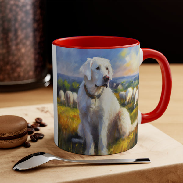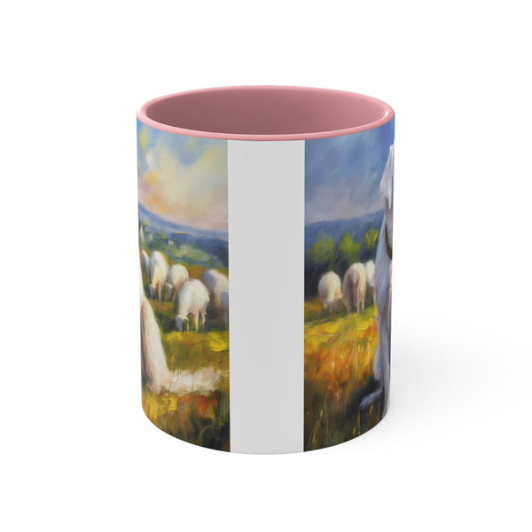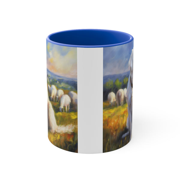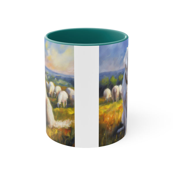 The personalized accent mug is exactly what mug merchants have been waiting for. With an array of color schemes (blue/white, green/white, red/white, and pink/white), these handled mugs give designers a wonderful canvas to work from. Any artwork is embellished relative to color schemes. The quality ceramic and printing can withstand machine washing.