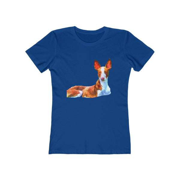 Celebrate your love for the Ibizan Hound with the Women's Slim Fit Ringspun Cotton T-Shirt. This comfortable and stylish tee is perfect for everyday wear, effortlessly pairing with your favorite jeans or shorts. Whether you're out for a stroll or lounging at home, this t-shirt showcases your admiration for this loyal, lively, and loving companion.