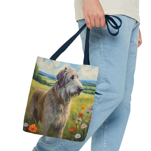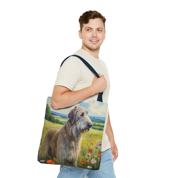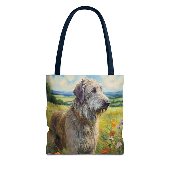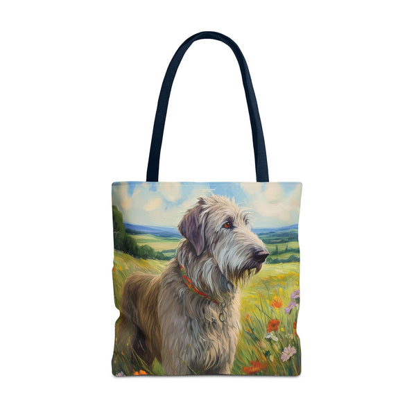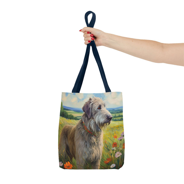 Discover the allure of our Irish Wolfhound Polyester Tote Bag (AOP), a perfect blend of charm and style. Adorned with a vibrant all-over print, this tote reflects your love for these gentle giants while making a fashionable statement. Designed with durability in mind, this medium-weight bag is crafted from 100% polyester, ensuring it withstands daily adventures. Available in three versatile sizes, it's the ideal companion for shopping trips, beach outings, or casual strolls.
