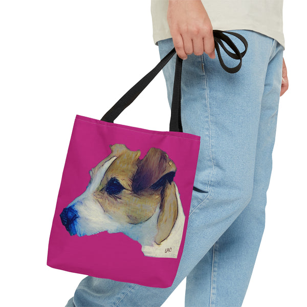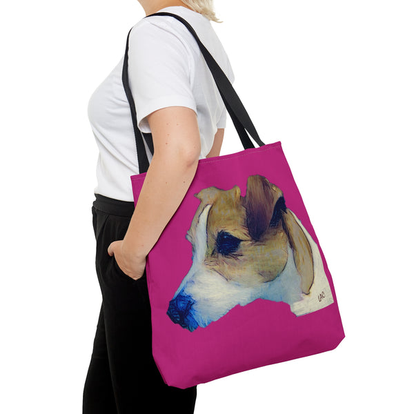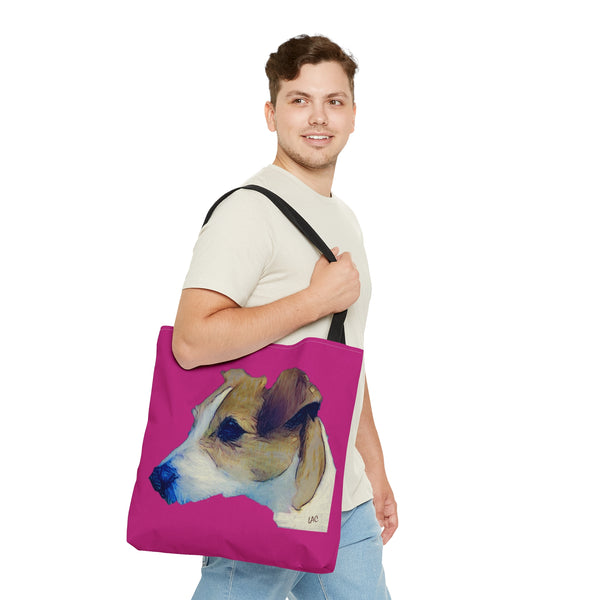 Introducing the Parson Jack Russell Terrier Tote Bag, a playful tribute to your spirited canine companion. With a vibrant all-over print, this tote captures the essence of Jack Russell Terriers, making it a fabulous accessory for every adventure. Crafted from sturdy 100% polyester, it's ready for beach trips and city strolls alike. The comfortable black cotton handles and generous size mean you'll have space for all your essentials, from dog treats to beach gear.
