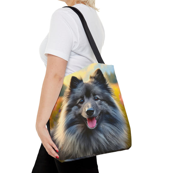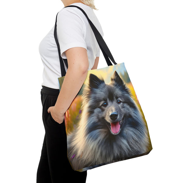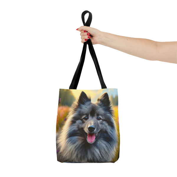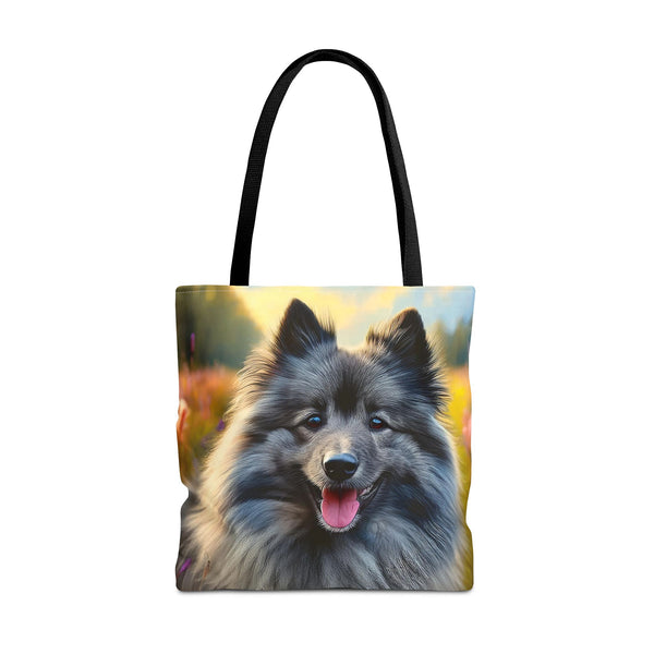 Celebrate your love for the Keeshond with the Keeshond Polyester Tote Bag. This vibrant bag showcases the cheerful spirit of the "smiling Dutchman," perfect for dog lovers. Made from durable polyester, it provides the practicality you need for everyday outings while highlighting the friendly and alert nature of this beloved breed. The playful design is sure to spark conversations and bring smiles wherever you go.