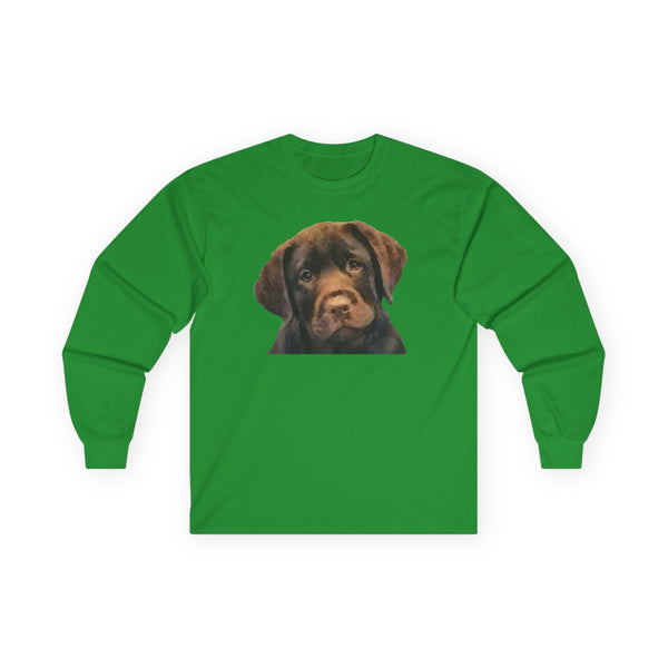 Wrap yourself in the warmth of our Chocolate Labrador Retriever Puppy Cotton Long Sleeve Tee. Designed for ultimate comfort, this tee embraces you like a loving Lab, making it perfect for any outing. The eco-friendly cotton fabric not only feels great but also helps you care for the planet. With a classic medium-weight feel, this tee is versatile for every occasion. Just a heads up, it runs smaller than usual—consider sizing up for that perfect fit.