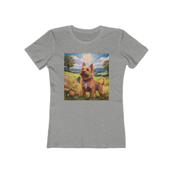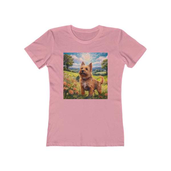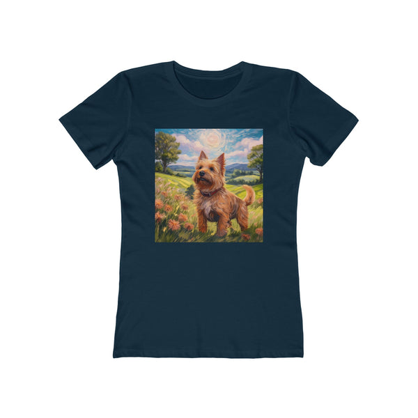 Introducing the Norwich Terrier - Women's Slim Fit Ringspun Cotton T-Shirt, the perfect blend of comfort and chic style. This super-soft tee features a flattering slim fit and longer body length, ideal for casual outings or relaxing at home. With a tear-away label for ultimate comfort, you can celebrate your love for this spirited breed while looking fabulous.