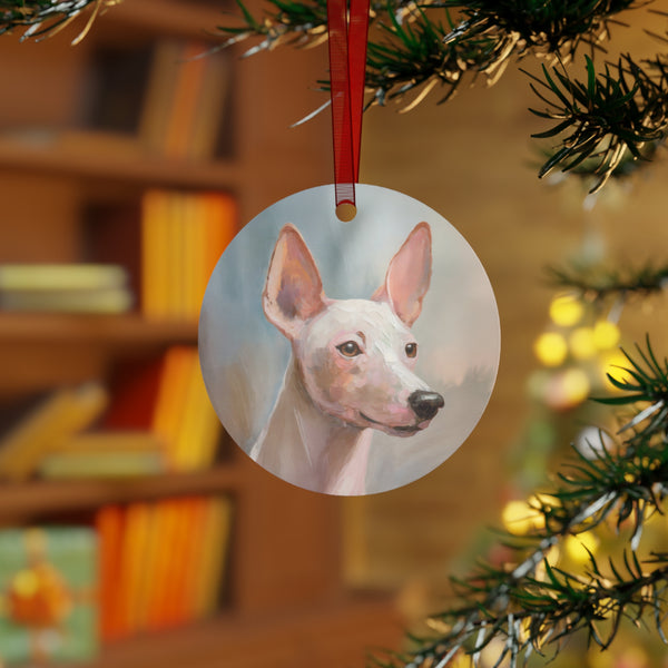 Celebrate the unique charm of the Xoloitzcuintli 'Mexican Hairless' with this delightful ornament! Perfect for your Christmas tree, this ornament captures the essence of Mexico's national dog, a creature of sacred heritage. Made from durable white aluminum, its scratch and chip-resistant surface ensures it sparkles year after year. Featuring a festive design printed in high resolution on both sides, each ornament comes ready to hang with a vibrant red ribbon, making it an ideal addition to your holiday décor or a thoughtful gift for dog lovers.