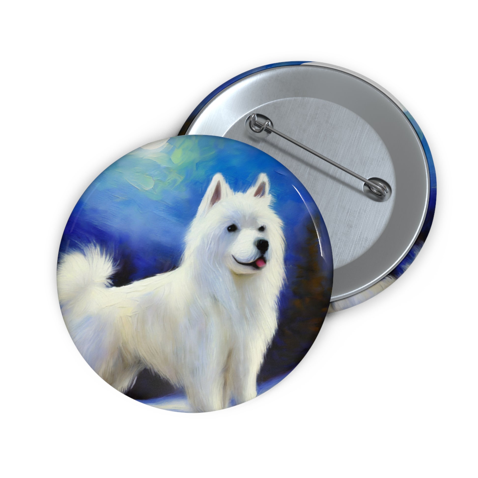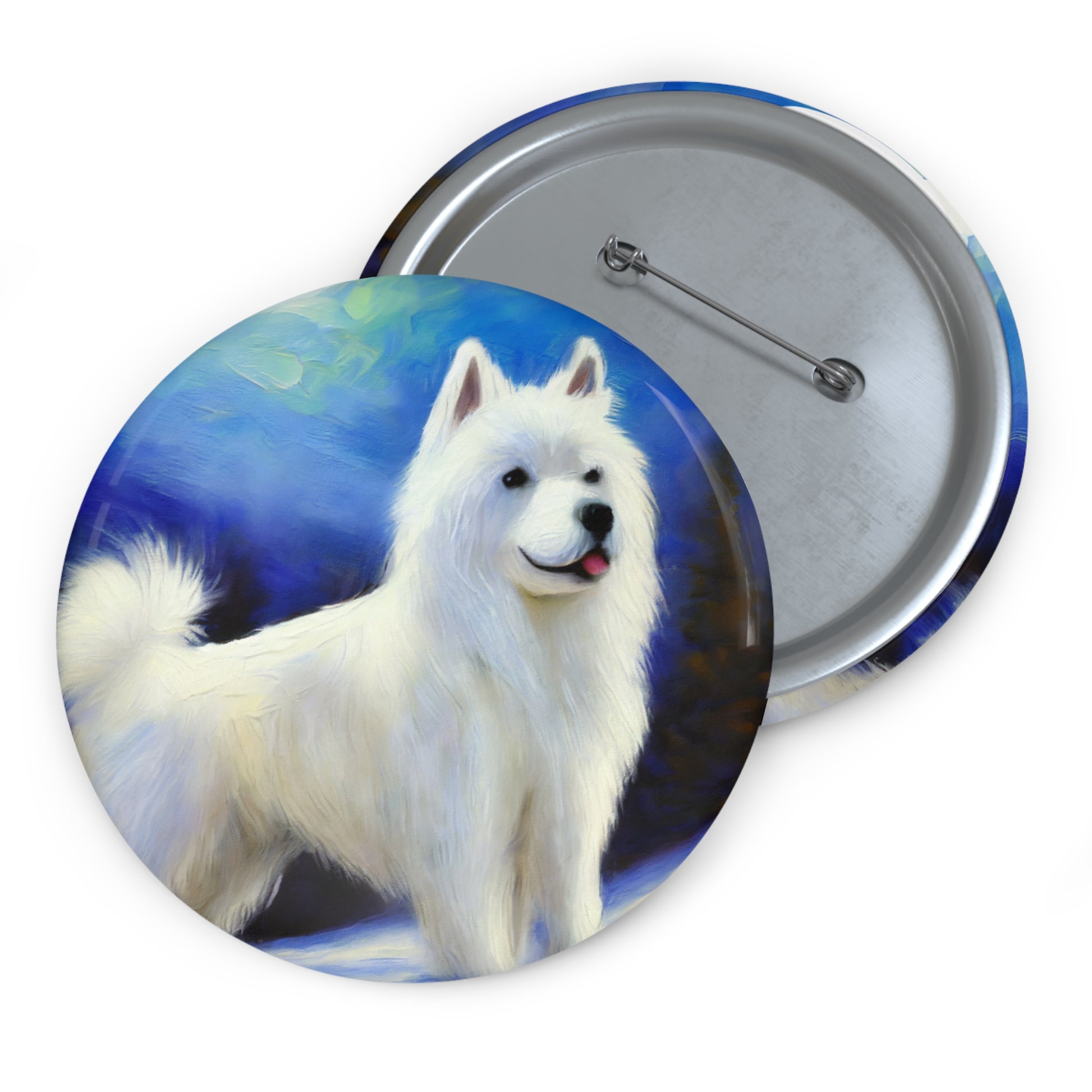 Celebrate the charm of the American Eskimo Dog with these delightful metal pinback buttons. Each button captures the playful essence and fluffy elegance of this spirited sled dog. Crafted for durability, they feature a glossy, scratch and UV resistant front, ensuring a vibrant tribute for years to come. The strong safety pin backing allows you to effortlessly enhance your favorite bags, jackets, or hats with a touch of personality and fun.