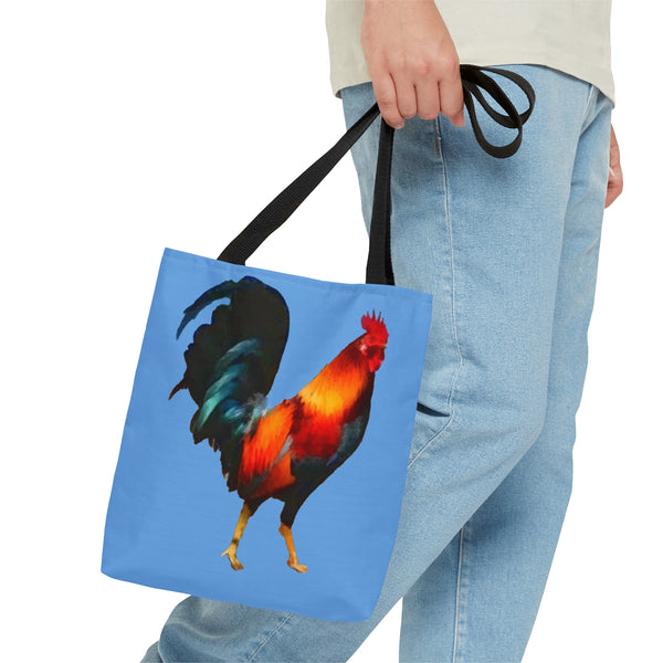 Meet the Rooster 'Silas' Tote Bag, your new trusty sidekick for all your escapades! This tote flaunts an eye-catching all-over print that mirrors your dynamic spirit, whether you’re basking in the sun or exploring the town. Featuring comfortable black cotton handles and sturdy boxed corners, it’s designed to hold everything you need while ensuring ease of carry. Made from 100% polyester, this bag pairs durability with high style. Why blend in when you were born to stand out?