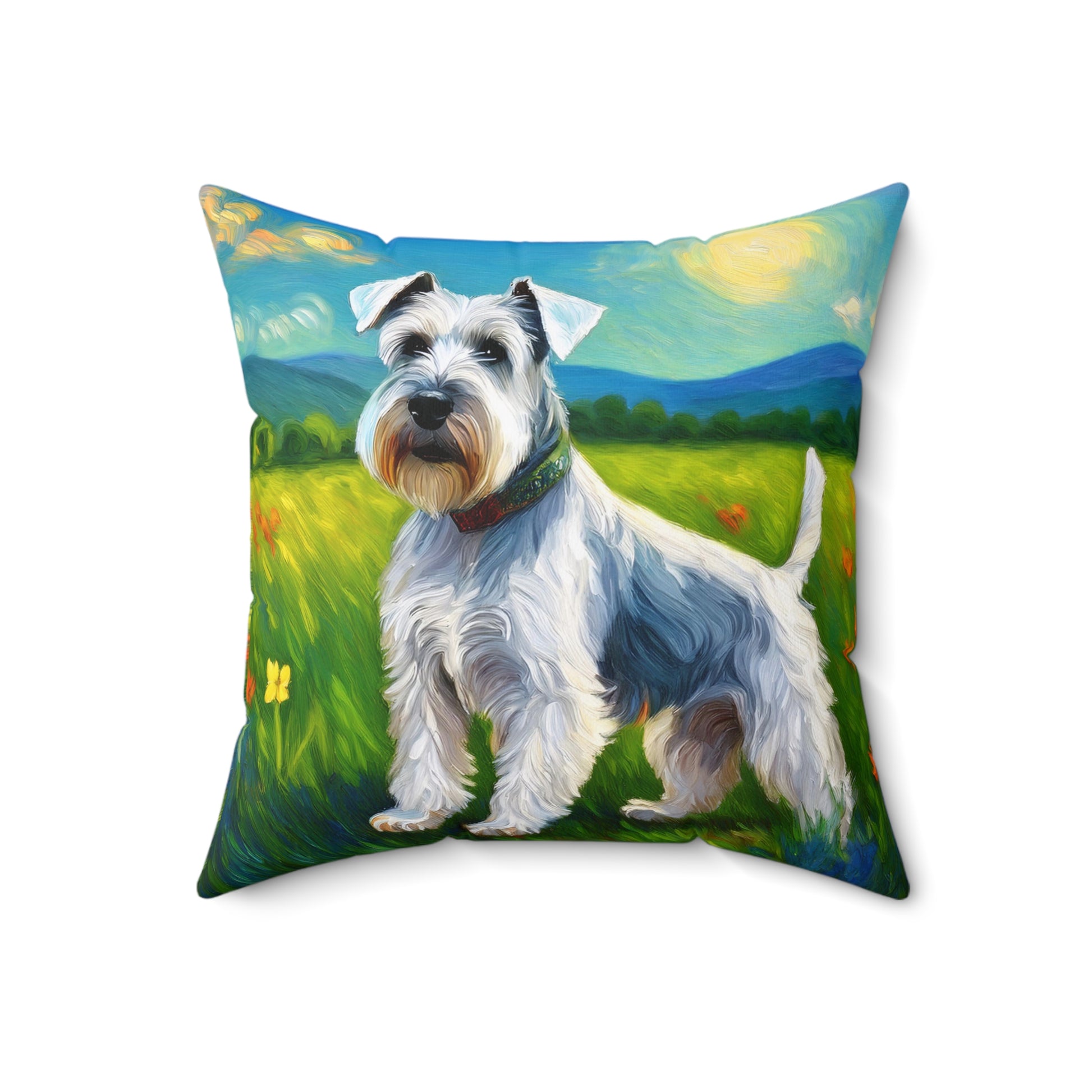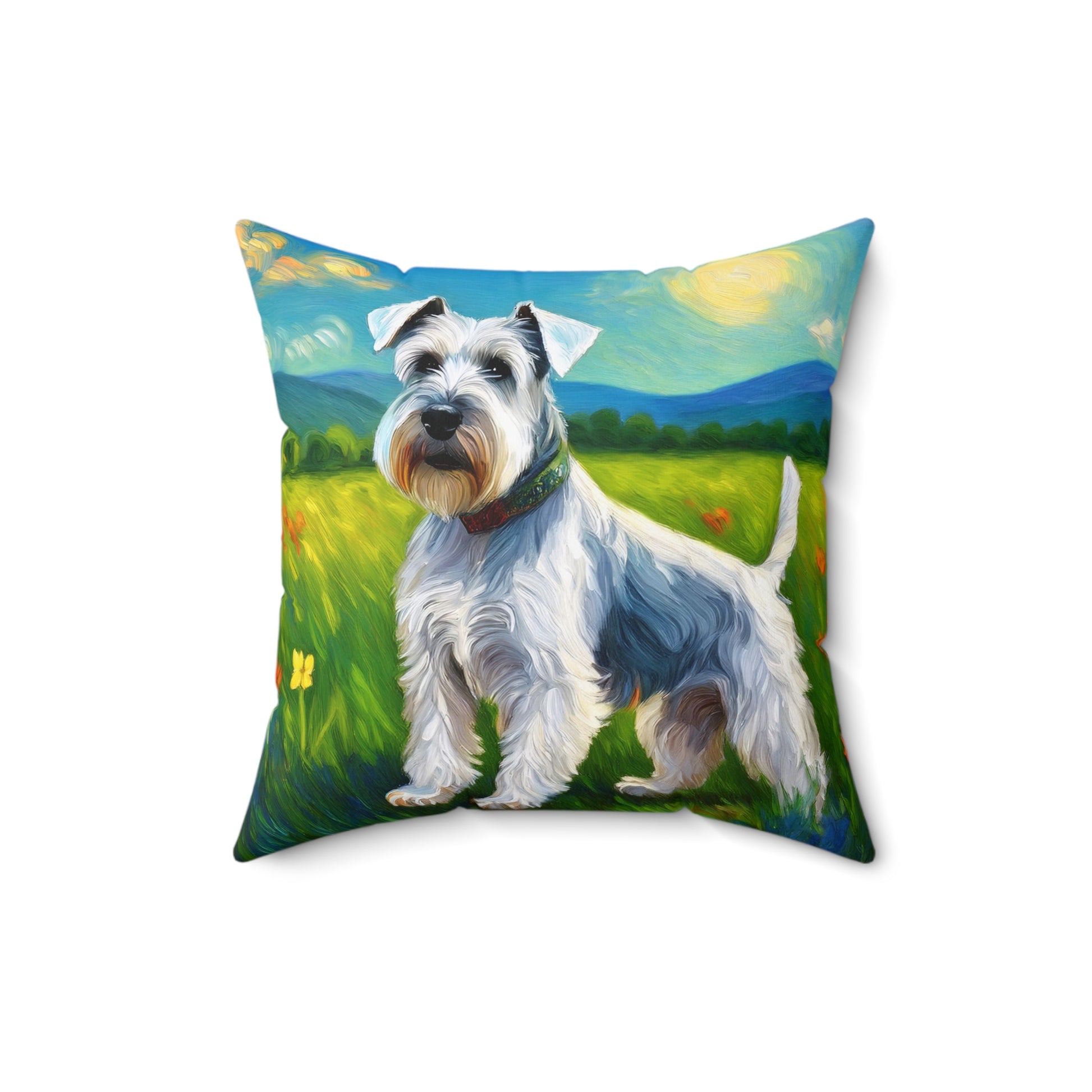 Add a touch of whimsical charm to your home with the Charming White Schnauzer Spun Polyester Throw Pillow. This delightful pillow showcases a vibrant Schnauzer design on both sides, capturing the spirit of this beloved breed. Crafted from durable spun polyester, it promises comfort and lasting style for your snuggly moments. The concealed zipper gives it a polished look while making maintenance a breeze. Perfect for dog lovers, this throw pillow beautifully complements any space and personality.