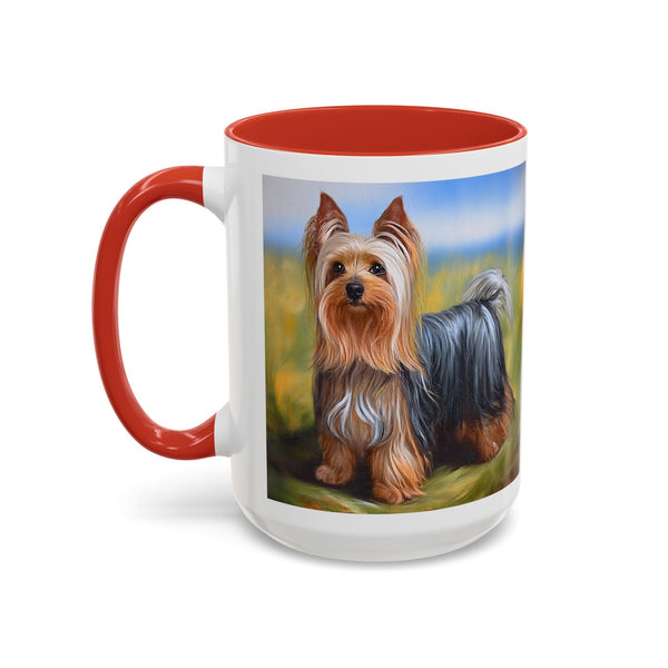 Start your day with the Silky Terrier 11oz Ceramic Accent Mug, a delightful companion for your morning brew. Available in cheerful colors like blue/white, green/white, red/white, and pink/white, it adds a splash of joy to every sip. Crafted from durable ceramic, this mug is dishwasher-safe for easy maintenance. Embrace the cozy experience with its comfy C-handle and rounded corners, perfect for enjoying your favorite drink at home or showcasing unique artwork.