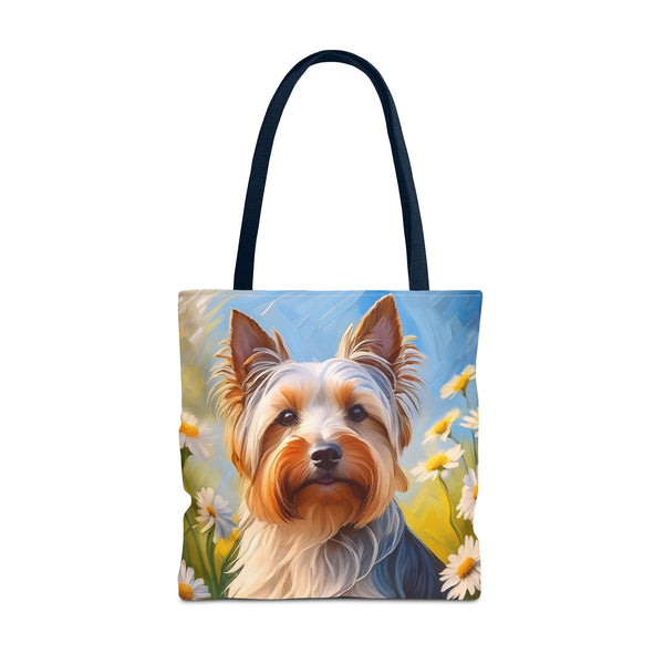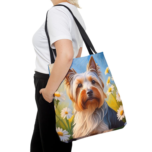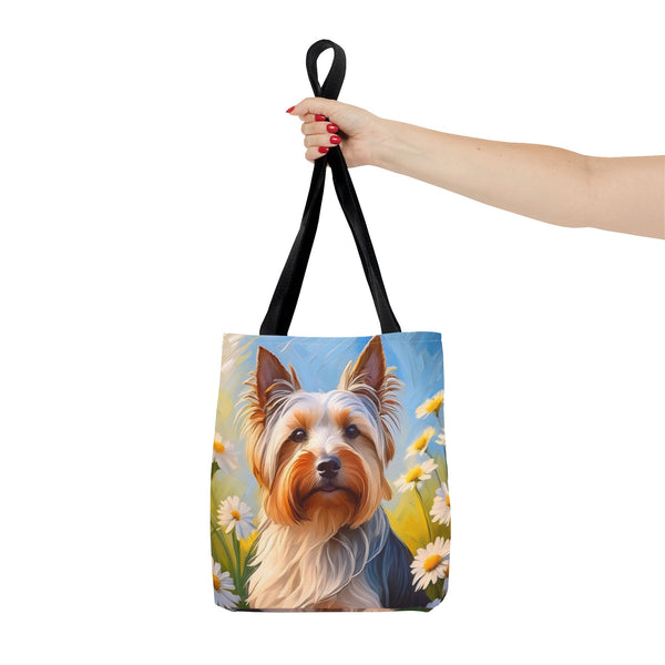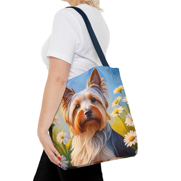 Introducing the Silky Terrier Polyester Tote Bag (AOP), a delightful blend of art and practicality! This tote features a vibrant painting of the charming Silky Terrier, making your outings both stylish and fun. Crafted from 100% spun polyester, it boasts superior durability for every adventure. With three spacious sizes and soft cotton webbing straps, carrying your essentials has never been more fashionable.