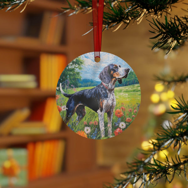 Celebrate your love for Bluetick Coonhounds with these charming Christmas Tree Metal Ornaments. Crafted from durable white aluminium, each ornament gleams with a glossy finish that brightens up your holiday decor. With a scratch and chip-resistant surface, you can safely store them with your cherished decorations year after year. Available in four delightful shapes—bell, tree, round, and oval—these ornaments come with a festive red ribbon for easy hanging. Each pack contains one unique piece, allowing you to create a collection that reflects the beauty of your beloved Bluetick Coonhound.- Made from white aluminium- Glossy and scratch-resistant finish- Available shapes: bell, tree, round, oval- Includes red ribbon for hanging