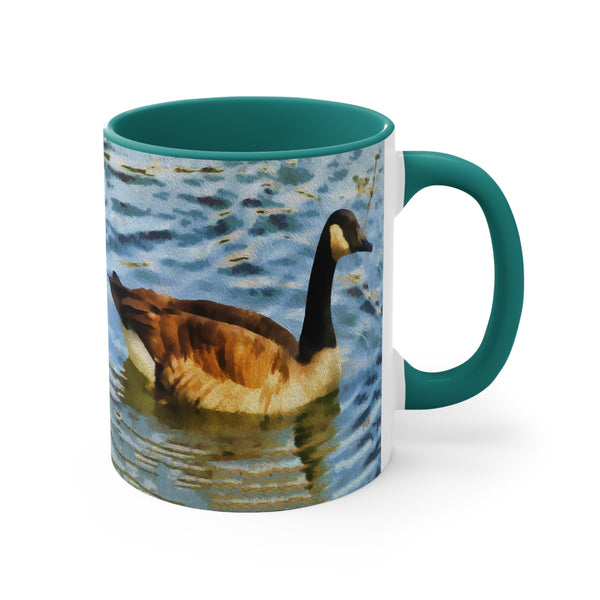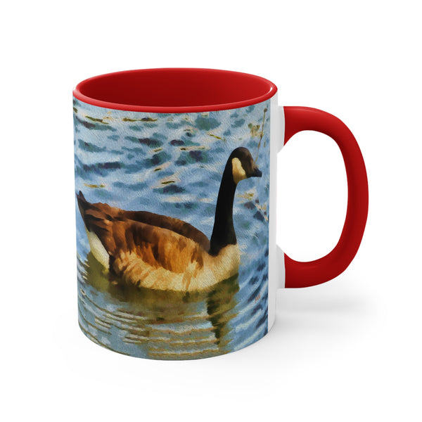 Introducing the Canada Goose Accent Coffee Mug, 11oz, designed to add a splash of color to your mornings! With its vibrant two-tone style, sipping your favorite beverage becomes a delightful experience. The comfy C-handle ensures a cozy grip as you enjoy every moment, making this mug both practical and fun. Let the captivating colored interior and handle turn this mug into a charming conversation starter, just like the cheeky Canada Goose itself.