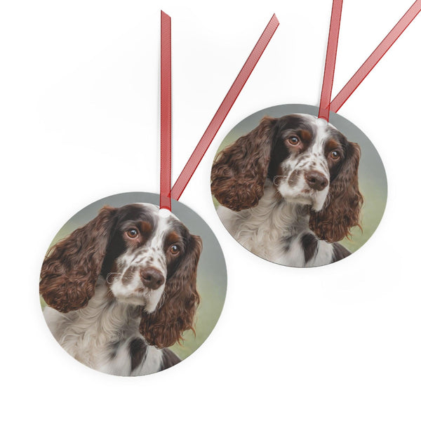 Bring some festive cheer to your holiday season with our French Spaniel Metal Ornaments. Crafted from durable white aluminum, these delightful decorations feature high-resolution prints on both sides and a glossy finish. Perfect for hanging on your tree or gifting to fellow dog lovers, each ornament comes with a cheerful red ribbon. Choose from four fun shapes: bell, tree, round, and oval. - Durable white aluminum base- Glossy finish - Scratch and chip resistant - Printed on both sides - Includes separate red ribbon