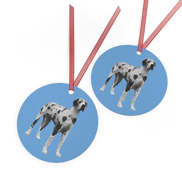 Celebrate the magnificence of the Great Dane with our Great Dane 'Zeus' Metal Ornaments. These exquisite pieces capture the grandeur and gentle spirit of these beloved giants, making them a delightful addition to your holiday decor. Crafted from durable aluminum, each ornament features a glossy finish that will shine brightly for countless celebrations to come. Double-sided printing ensures every angle showcases the beauty of your favorite breed, while a cheerful red ribbon adds the perfect finishing touch. Whether adorning your tree or being gifted to a fellow dog lover, these ornaments bring warmth and joy to the season.