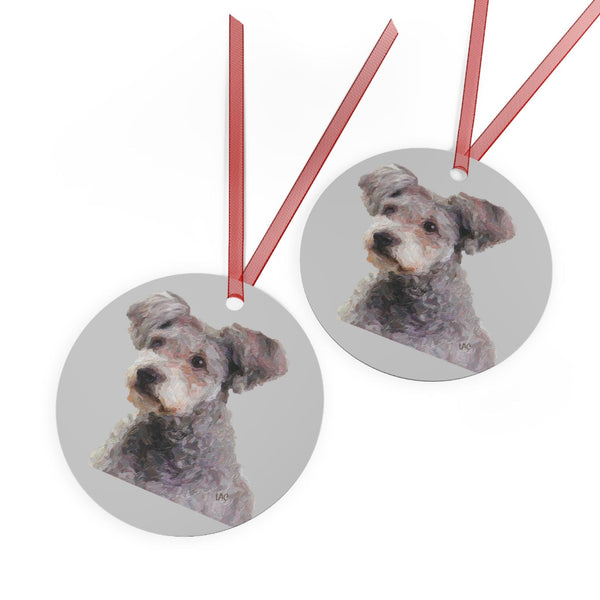 The Hungarian Pumi Metal Ornaments bring a sprinkle of charm to your holiday décor. Expertly crafted from sturdy aluminum, these delightful decorations are designed to endure countless seasons. Each ornament features vibrant double-sided prints and is ready to hang with a cheerful red ribbon, enhancing the festive spirit of your tree. - Durable aluminum construction - Chip-resistant surface - Double-sided vibrant prints - Ready to hang with red ribbon