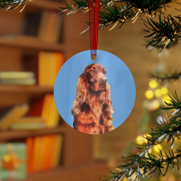 Bring home the Irish Setter 'Shamus' Metal Ornaments and let your holiday cheer shine! Crafted from durable aluminum, these delightful ornaments are designed to last through many joyous seasons. With high-resolution prints on both sides, they double the charm and sparkle of your tree. Each ornament is ready to hang with a cheerful red ribbon, making decorating as fun as a puppy's playtime.- Material: Aluminum- Design: High-resolution prints on both sides- Includes: Cheerful red ribbon for easy hanging