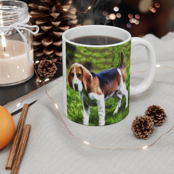 The American Foxhound Ceramic Mug is more than just a vessel; it’s a celebration of the graceful spirit of this noble hunting dog. Each sip from this elegantly crafted mug evokes warmth and fond memories, perfect for enjoying your favourite beverage. Whether personalised with delightful designs or cherished photos, it transforms your everyday coffee ritual into an enchanting moment. Its sturdy white ceramic ensures durability while being microwave and dishwasher safe for effortless care. Share the joy with fellow dog lovers or treat yourself to this exquisite piece of art.