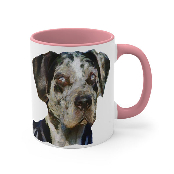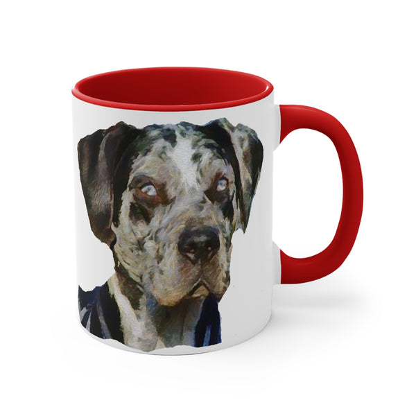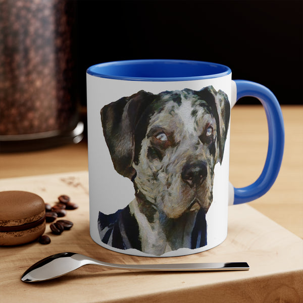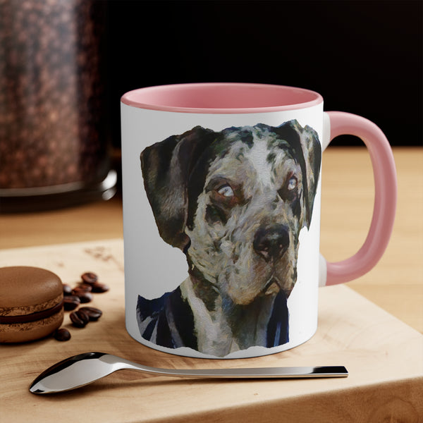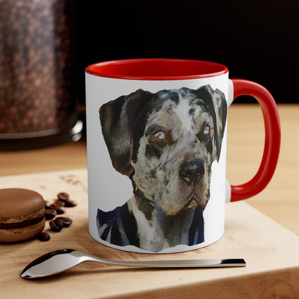 Indulge in the luxury of the American Leopard Hound Accent Coffee Mug, 11oz, a harmonious blend of artistry and functionality. The ergonomic C-handle design ensures a comfortable grip, while the striking two-tone aesthetic, with a bold-coloured interior and handle, elevates your kitchen décor. This exquisite mug features an original painting of the American Leopard Hound, capturing the essence of this brave and devoted hunter. It is more than a mere drinking vessel; it is a statement piece that transforms your coffee ritual into an unforgettable experience.