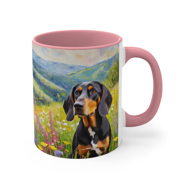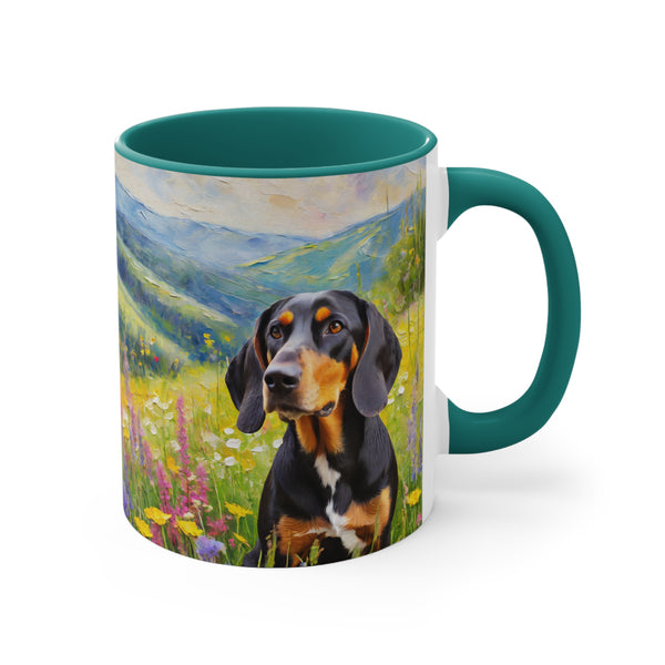 Introducing the Black & Tan Coonhound Accent Coffee Mug, 11oz, where functionality meets artistry. This delightful mug features a two-tone colour scheme with a vibrant interior and a comfortable C-Handle, making every sip a pleasure. Crafted from durable, lead-free ceramic, it's perfect for those who appreciate quality in their everyday cups. Not just a mug, but a canvas for your love of this charming breed, it makes an ideal gift for nature lovers and Coonhound enthusiasts alike. Elevate your coffee breaks or tea time with this unique accent piece.