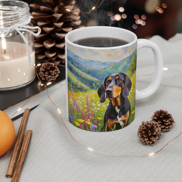 Introducing the Black & Tan Coonhound Ceramic Mug 11oz, where functionality meets personality. Customisable to reflect your unique style, this mug is perfect for showcasing original artwork or personal designs. Crafted from durable white ceramic, it’s both BPA and lead-free, ensuring a safe sip every time. With a generous 11-ounce capacity, this mug features a comfy c-handle for easy handling. Plus, its shiny finish elevates any kitchen or office setup. Ideal for enjoying your favourite beverages, whether that's coffee, tea, or hot chocolate.