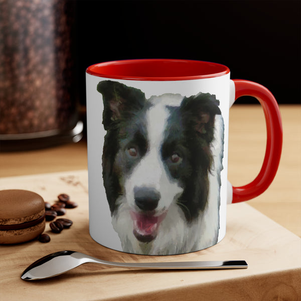 Introducing the Border Collie '#1' Ceramic Accent Coffee Mug, 11oz, the perfect way to add colour and personality to your mornings. Celebrate the agile spirit of Border Collies with each sip, thanks to its vibrant two-tone design and comfortable C-handle. This high-quality white ceramic mug not only catches the eye but is built to withstand everyday use. It’s perfect as a gift for dog lovers or a delightful treat for yourself.