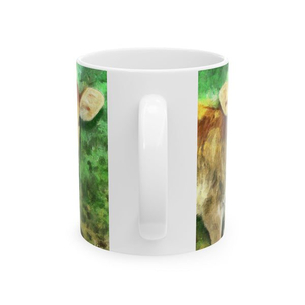 Warm your soul with a nice cuppa out of this perfectly sized ceramic mug. Customize with cool designs, photos or logos to make that "aaahhh!" moment even better. It’s microwave safe and dishwasher safe and made of white, durable ceramic in an 11-ounce size. It's high-quality sublimation printing makes it the perfect gift for your true coffee, tea or hot chocolate lover.