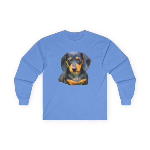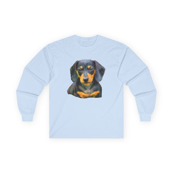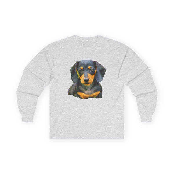 Unleash your inner pup with the Dachshund 'Doxie #2' Unisex Cotton Long Sleeve Tee! Perfectly designed for lovers of these famously long, low silhouettes, this tee captures the essence of a weiner dog's ever-alert expression and bold, vivacious personality. Made from ultra-soft, 100% cotton, it promises cozy comfort whether you're heading out on an adventure or enjoying a laid-back day at home. With stylishly tapered shoulders and no pesky side seams, this tee hugs you just right!