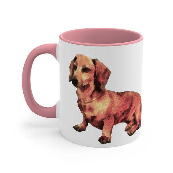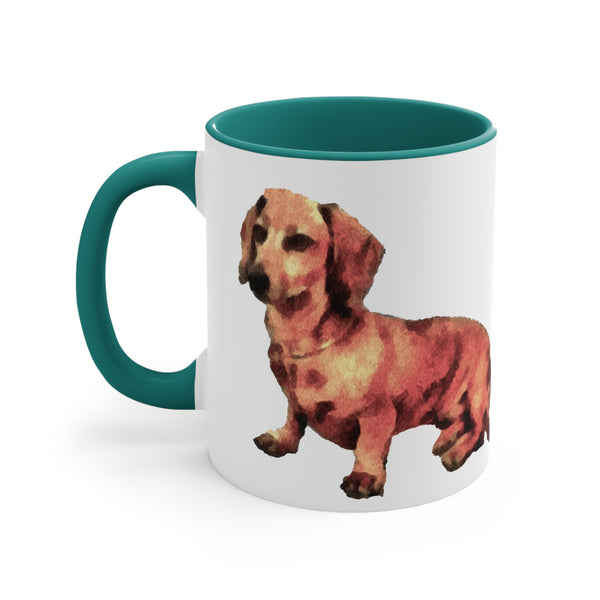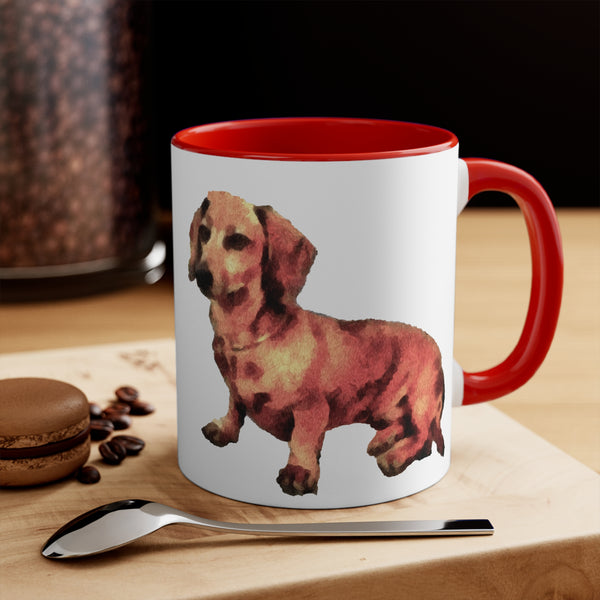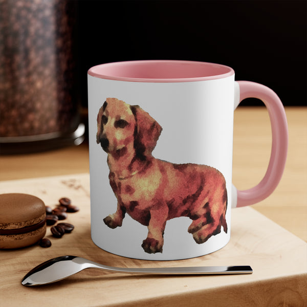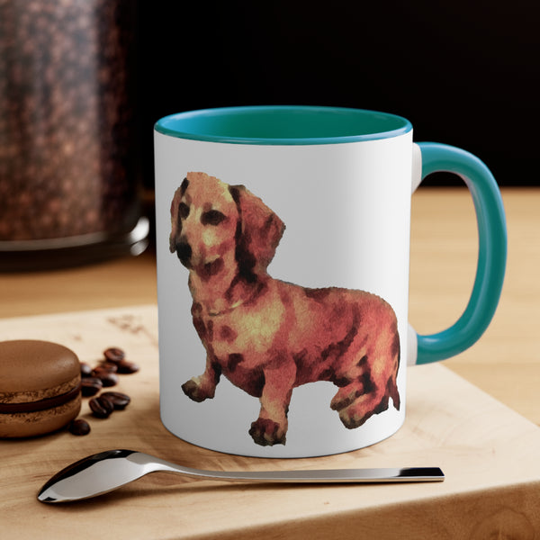 Sip in style with the Dachshund 'Simone' Ceramic Accent Coffee Mug, 11oz! This vibrant, two-tone mug captures the essence of your beloved weiner dog with a whimsical design. The comfortable C-handle ensures delightful coffee breaks while the eye-catching contrast of the colored interior and handle adds a splash of fun. Just like your Dachshund’s famously long, low silhouette and ever-alert expression, this mug brings joy to your daily routine!
