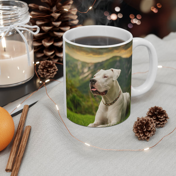 Sip your beverages in style with the Dogo Argentino Ceramic Mug 11oz, designed for coffee, tea, and hot chocolate enthusiasts. This charming mug, crafted from durable white ceramic, offers a classic shape with rounded corners for comfortable sipping. With high-quality sublimation printing, it’s the perfect gift for those who adore the courageous and loyal Dogo Argentino. Show off your love while enjoying your favorite drinks!