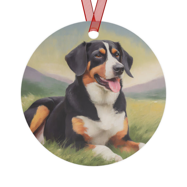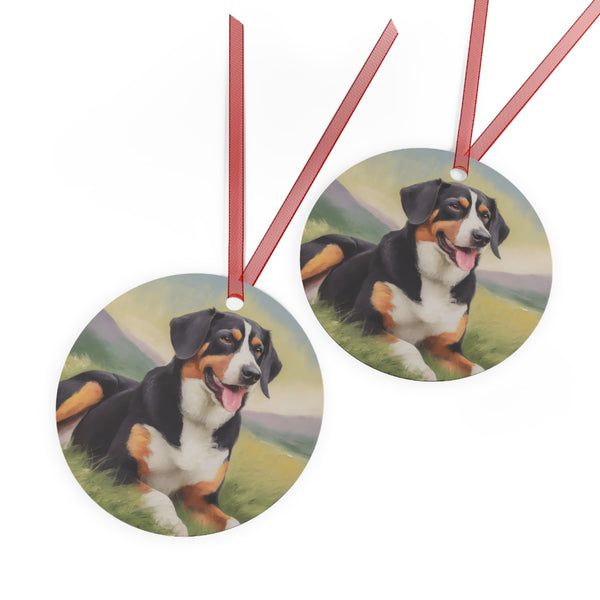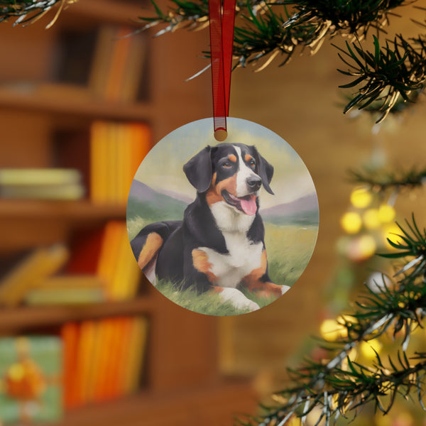 Celebrate the holiday season with Entlebucher Mountain Dog Metal Ornaments. These vibrant, double-sided ornaments capture the essence of your festive spirit, perfect for any tree. Crafted from durable, scratch and chip-resistant glossy white aluminum, they promise to shine bright through the years. Choose your favorite shape—Bell, Tree, Round, or Oval—each adorned with a charming red ribbon for effortless hanging.