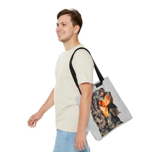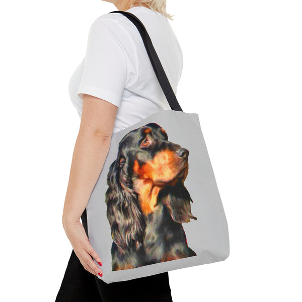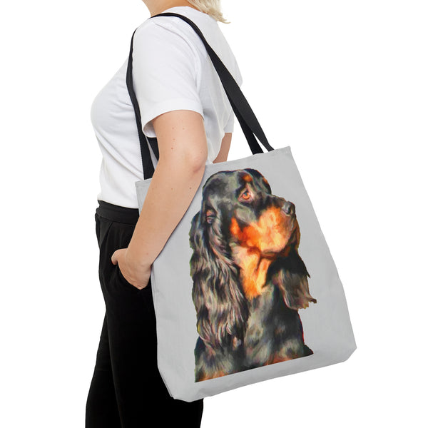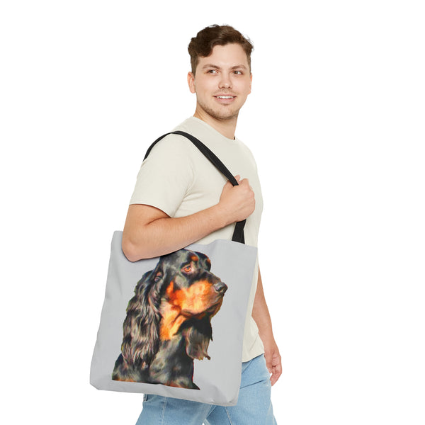 Introducing the Gordon Setter Tote Bag, a paw-sitively charming accessory that showcases your love for this elegant breed. With its stylish all-over print, this tote is perfect for beach days or running errands in style. Crafted from durable materials, it’s built to withstand all your adventures, while comfortably carrying your essentials with its black cotton handles and secure interior.