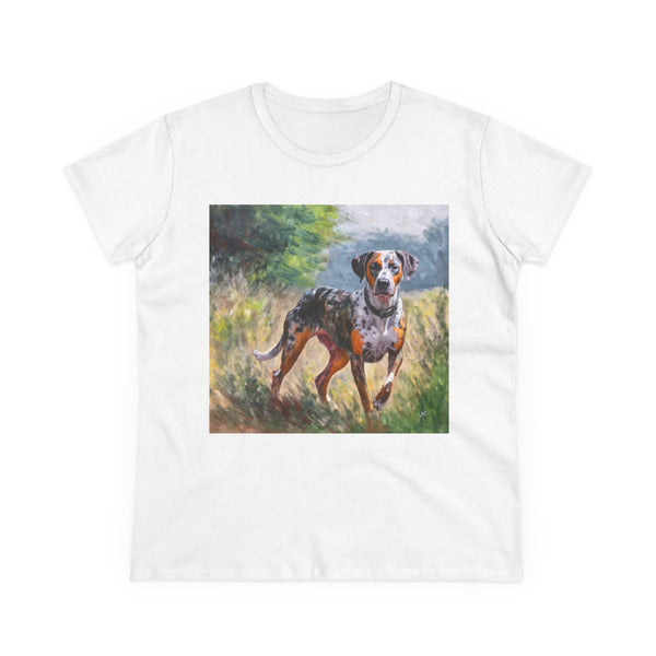 Experience unmatched comfort with the Catahoula Women's Midweight Cotton Tee. Crafted from ultra-soft 100% cotton fabric, this t-shirt is perfect for both relaxation and adventure. The semi-fitted silhouette with cap sleeves not only flatters your figure but also ensures ease of movement, making it an essential addition to your wardrobe. Forget about shirts that shrink or fade; this tee is pre-shrunk, maintaining its lovely fit even after multiple washes. The added durability from the taped neck and shoulders means you can count on this tee for long-lasting wear. Let the Catahoula Women's Midweight Cotton Tee add a touch of whimsy to your style.