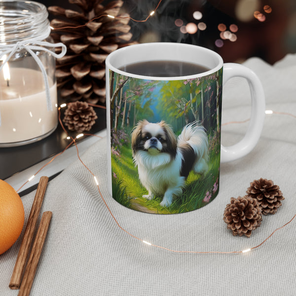 Introducing the Japanese Chin Ceramic Mug 11oz, a delightful companion for your favorite hot beverages! This lovely white ceramic mug features rounded corners and a comfy C-handle, perfect for those cozy sips. It's designed to elevate your breaks, much like a cat gracefully perched on a windowsill. Crafted from lead and BPA-free materials with high-quality sublimation printing, this mug makes a purr-fect gift for any warm drink enthusiast.