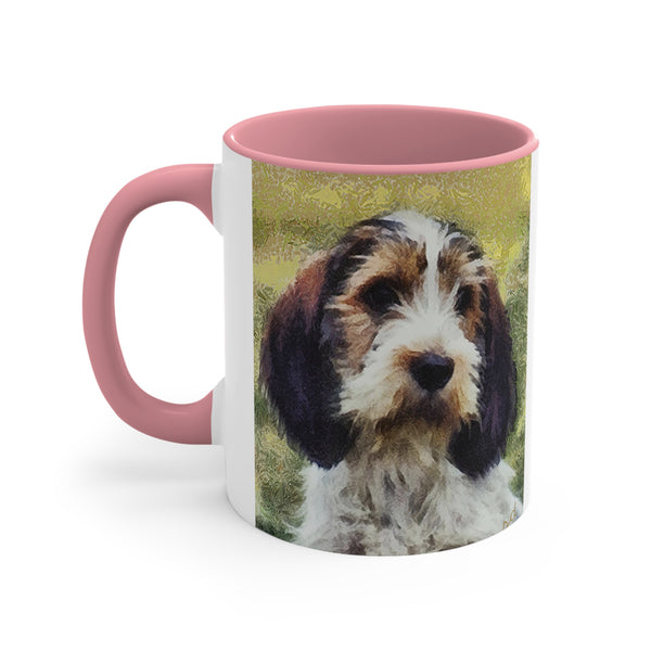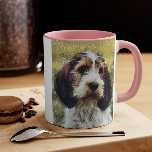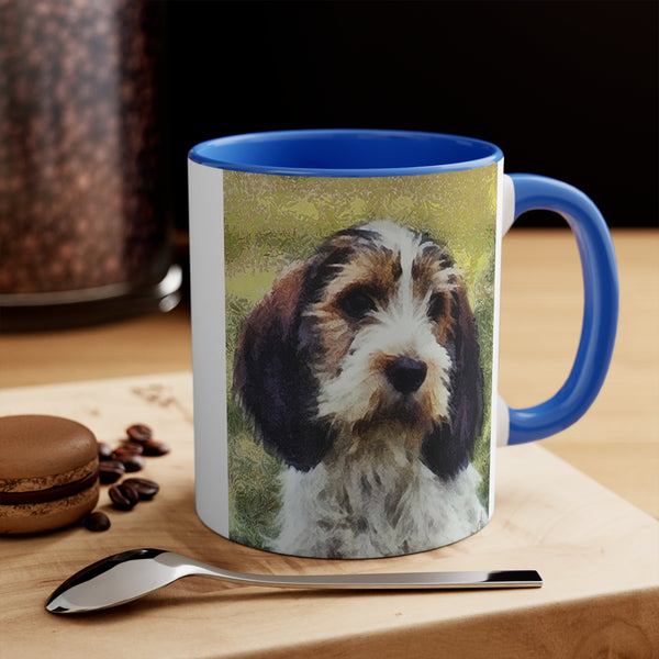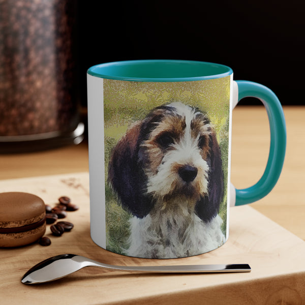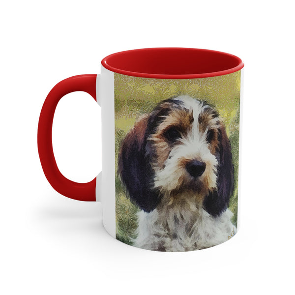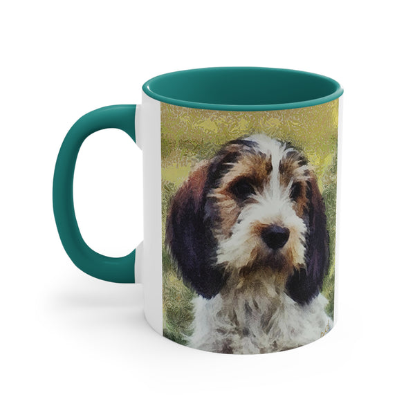 Brighten your coffee breaks with the Petite Basset Griffon Accent Coffee Mug, 11oz. This delightful mug showcases a vibrant two-tone design that livens up each sip. The uniquely designed C-handle ensures comfort for both small hands and big hugs, making every coffee moment cozy. Made from durable white ceramic, it's not just a pretty face but also built to withstand your daily adventures. Channel the charm of this affectionate pup with every cup you enjoy!