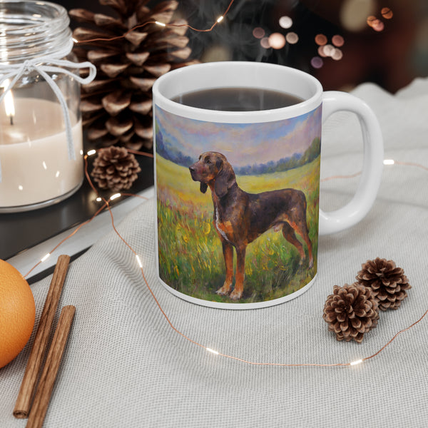 Introducing the Plott Hound Ceramic Mug 11oz, a delightful tribute to North Carolina's fearless big-game scent hound. Its classic white design boasts high-quality sublimation printing, making it a stylish vessel for your favorite hot beverages. Perfect for cozy mornings and relaxing evenings, this mug is a standout gift for dog lovers. Celebrate the loyalty and stamina of the Plott Hound with every sip.