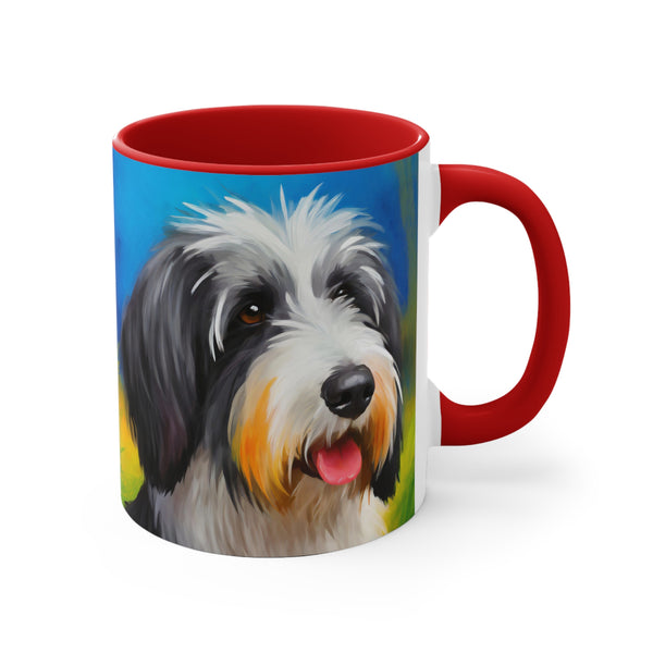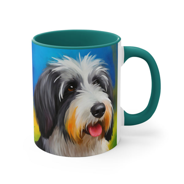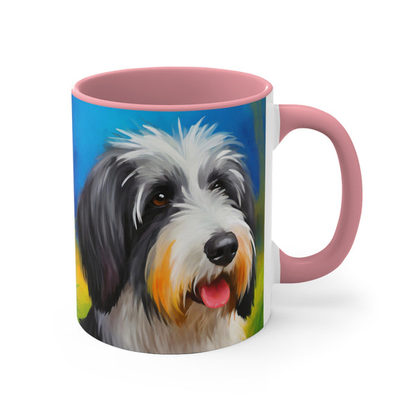 - Start your day right with a cheerful splash of color! The vibrant two-tone design of this Polish Lowland Sheepdog Accent Coffee Mug will instantly brighten your morning routine.